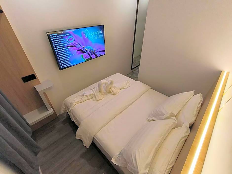 Standard Double Room is 129 square feet and includes a double bed 131-150 width plus desk.